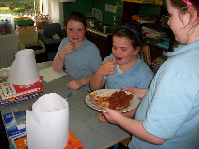 2nd, 3rd and 4th classes fed the multitudes recently, serving up a scrumptious 3 course meal. For starters we enjoyed Corn Fritters, the main course consisted of Meatballs and for desert we savoured their sensational “Squeamish Squares”!